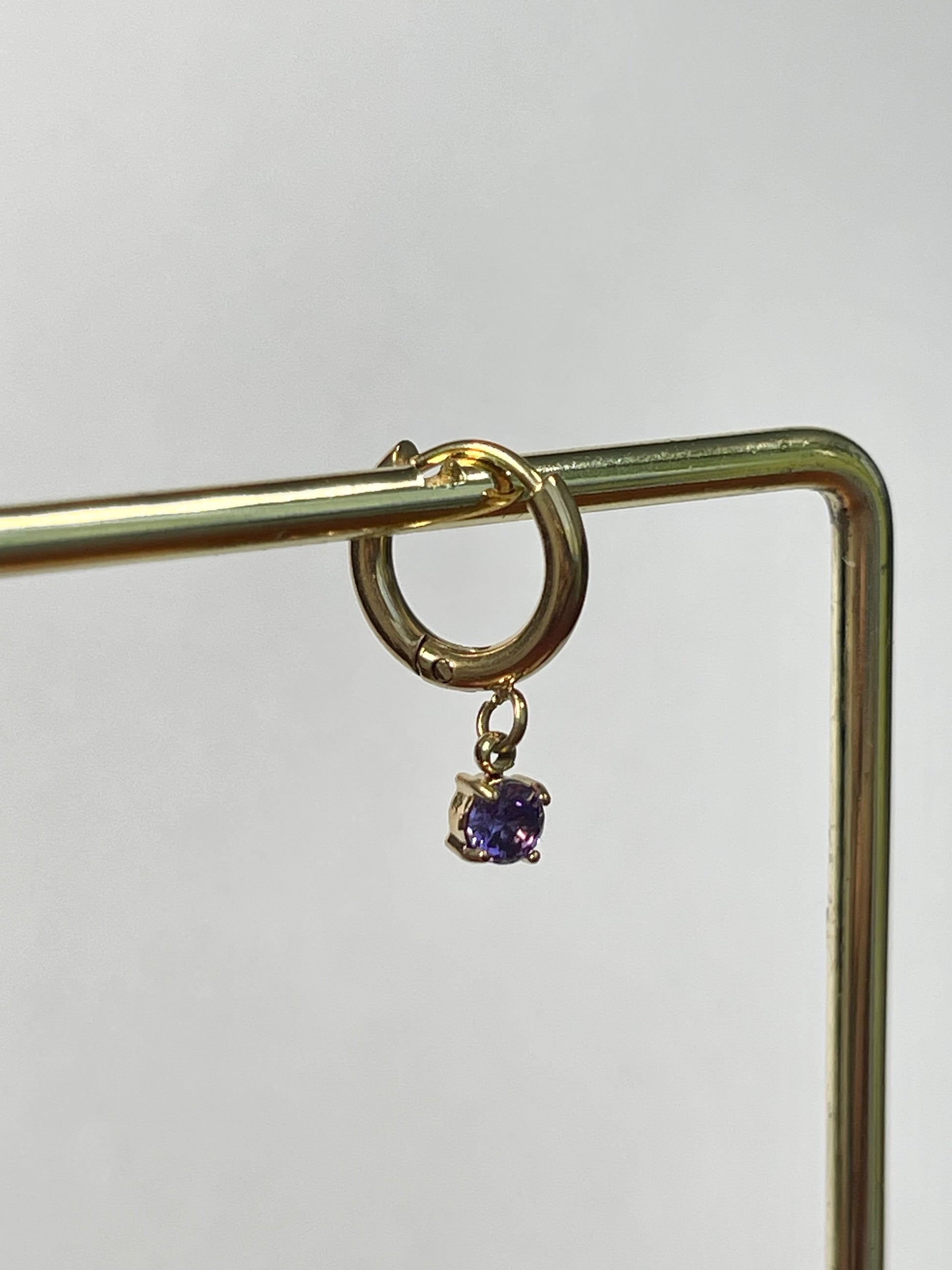 Este aro pequeño con una pequeña zirconita lila es delicado y versátil, ideal para combinar con otros pendientes y piercings. Además, con ese rosa intenso parece que está en su Speak Now era,