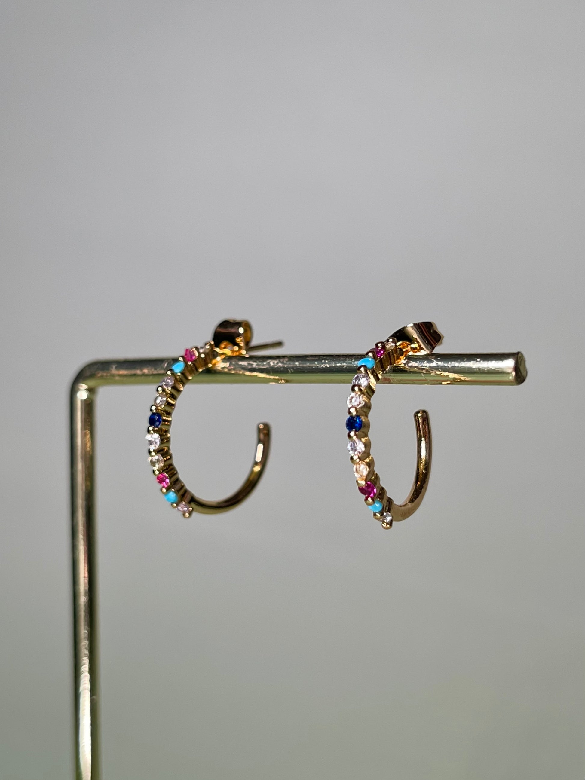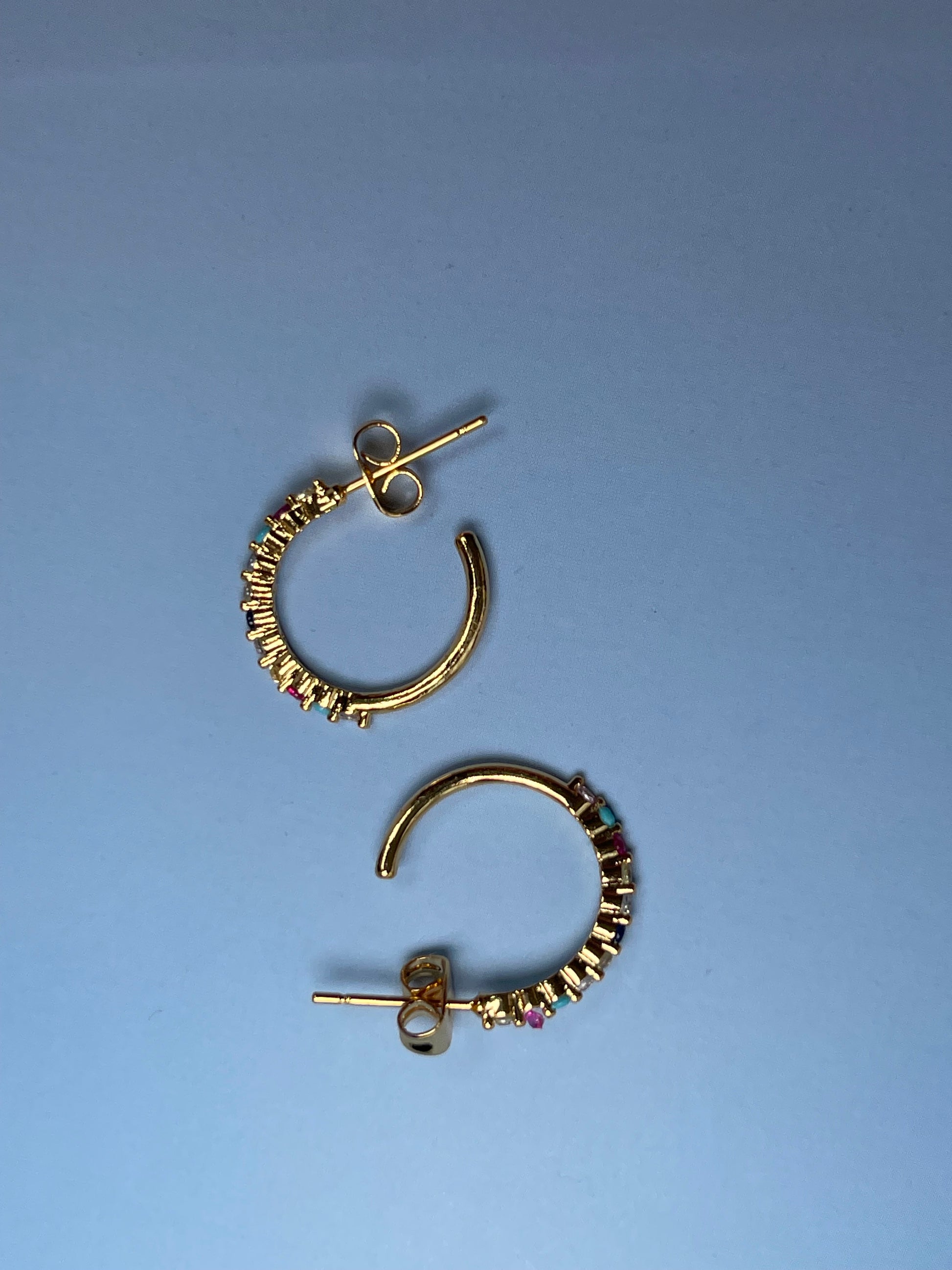 Estos aros DORADOS con pequeñas zirconitas de colores son delicados y versátiles, ideales para combinar con otros pendientes y piercings. Además, con todos esos colores best belive *you'll* be BEJEWELED!