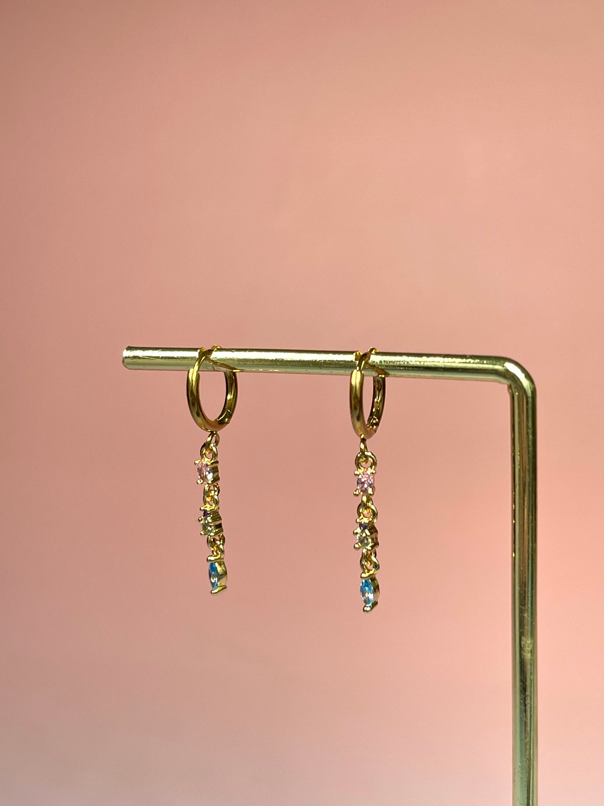 Dale brillo y color a tu look con este aro. Hechos de acero inoxidables y con zirconitas de colores pastel, son perfectos para que puedas usarlos sin preocupaciones.