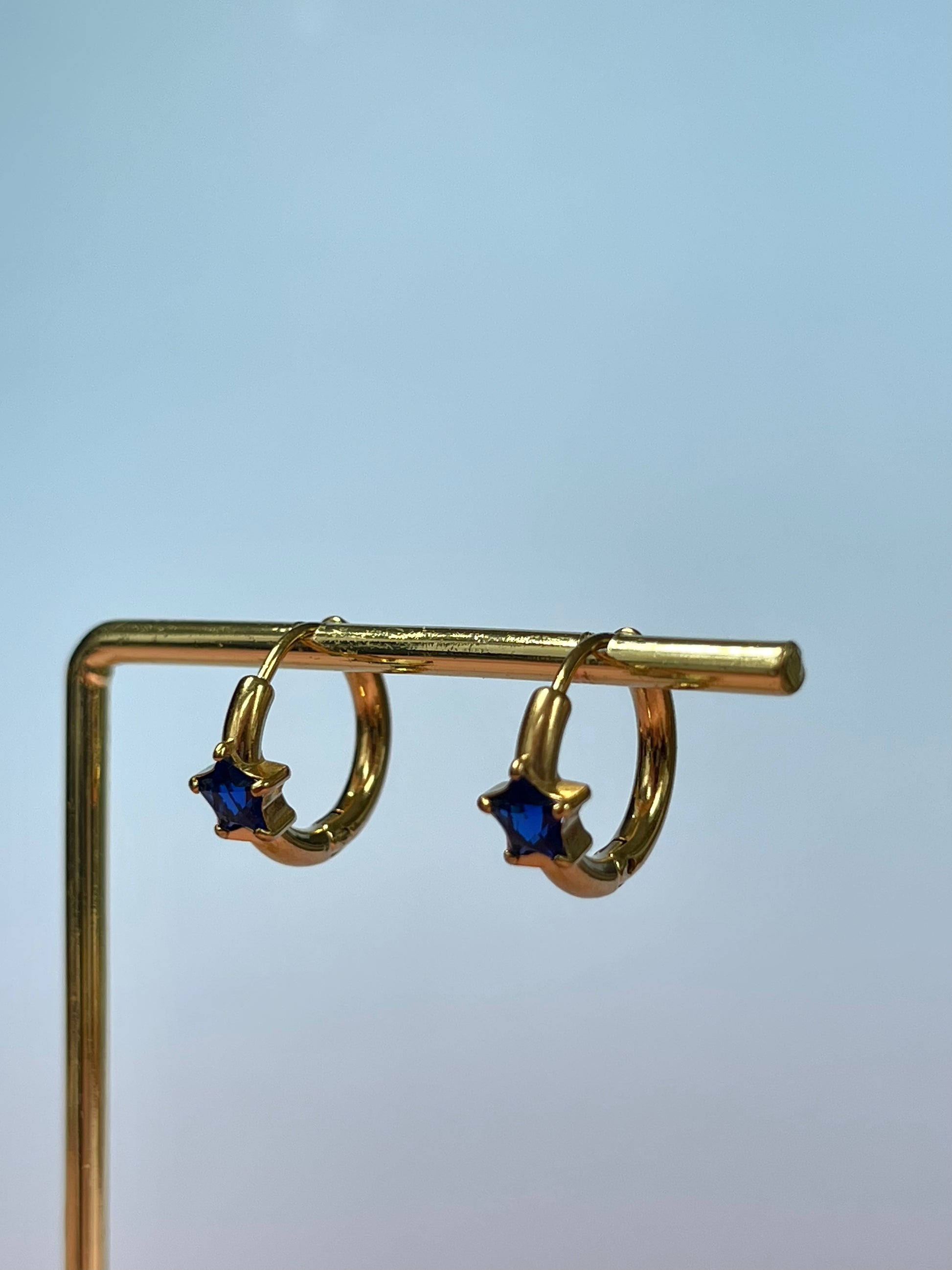 Estos aros pequeños con una estrella azul son perfectos para cualquier ocasión. Son cómodos y fáciles de combinar con otros pendientes, ¡añadiendo un toque de estilo a tu look!