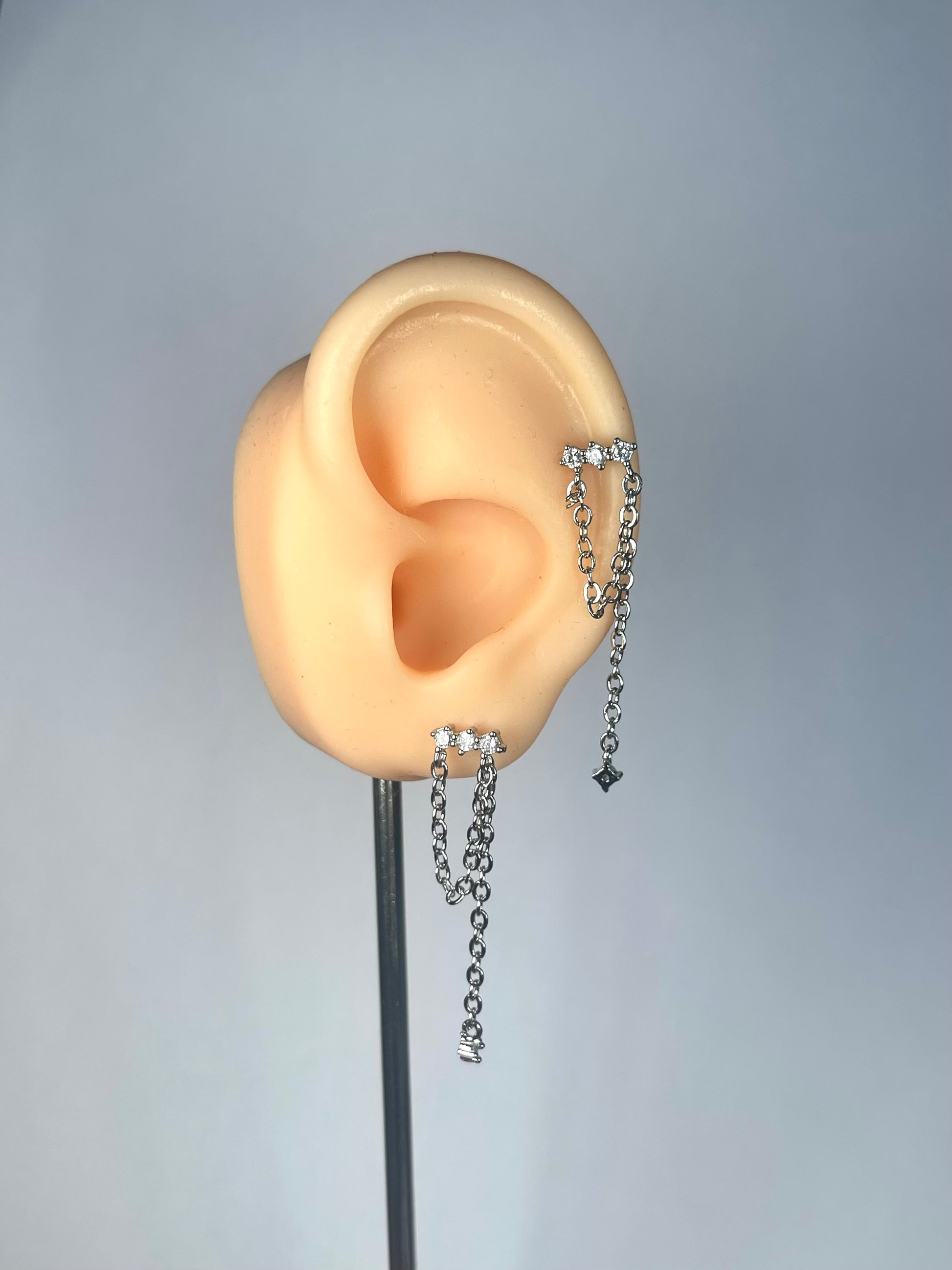 ¡Dale color, brillo y elegancia a tus orejas con estos studs plateados! Ideal para los piercings en el lóbulo, tragus, flat, conch, helix y forward helix. Son muy cómodos gracias a su cierre "Flatback" y estan hecho con materiales resistentes e hipoalergénicos ¡podrás dormir y ducharte con ellos puestos sin preocupaciones! Un accesorio muy versátil con un toque elegante ideal para cualquier ocasión