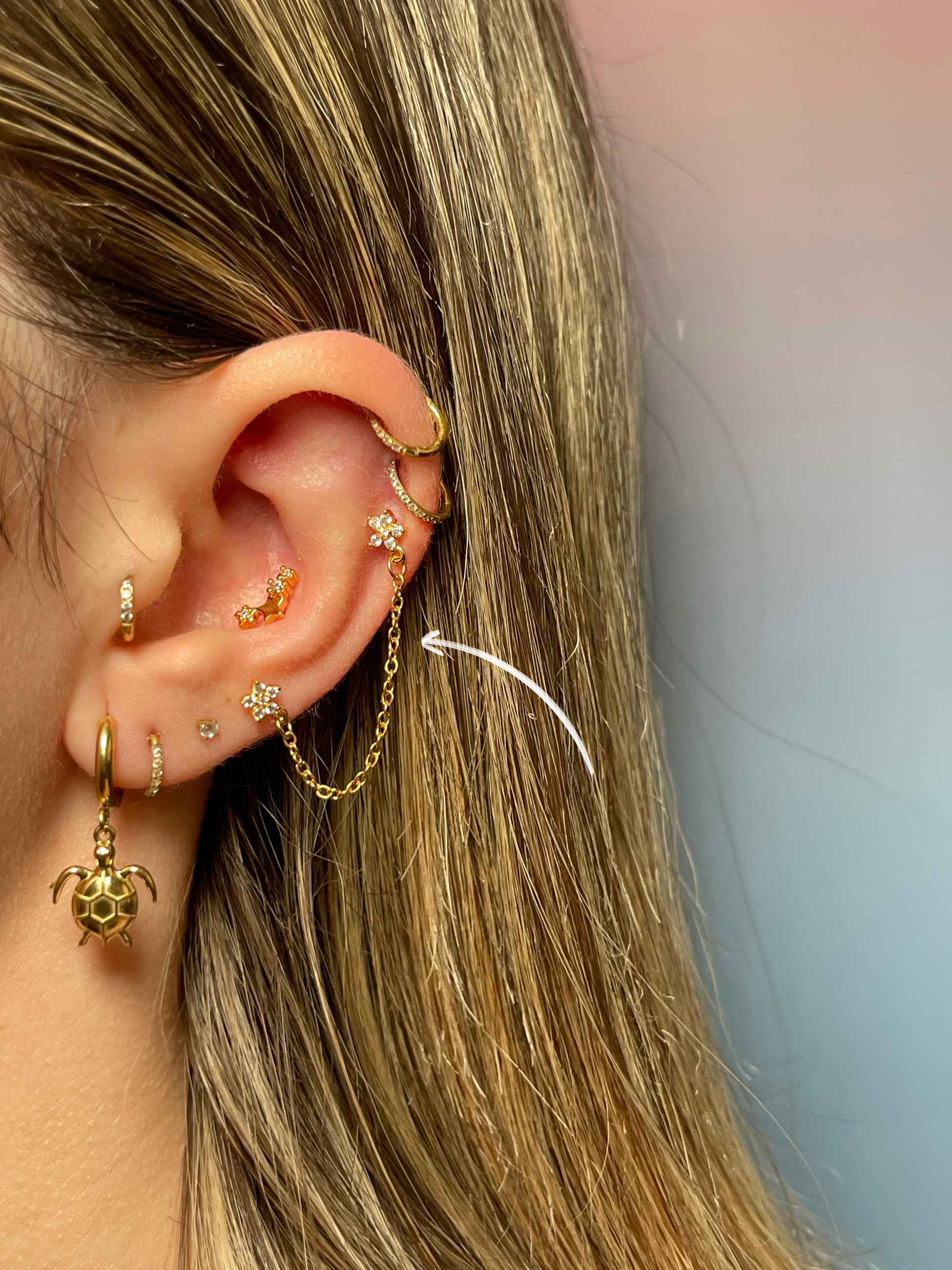 Pendiente flores cadena dorado (unidad)